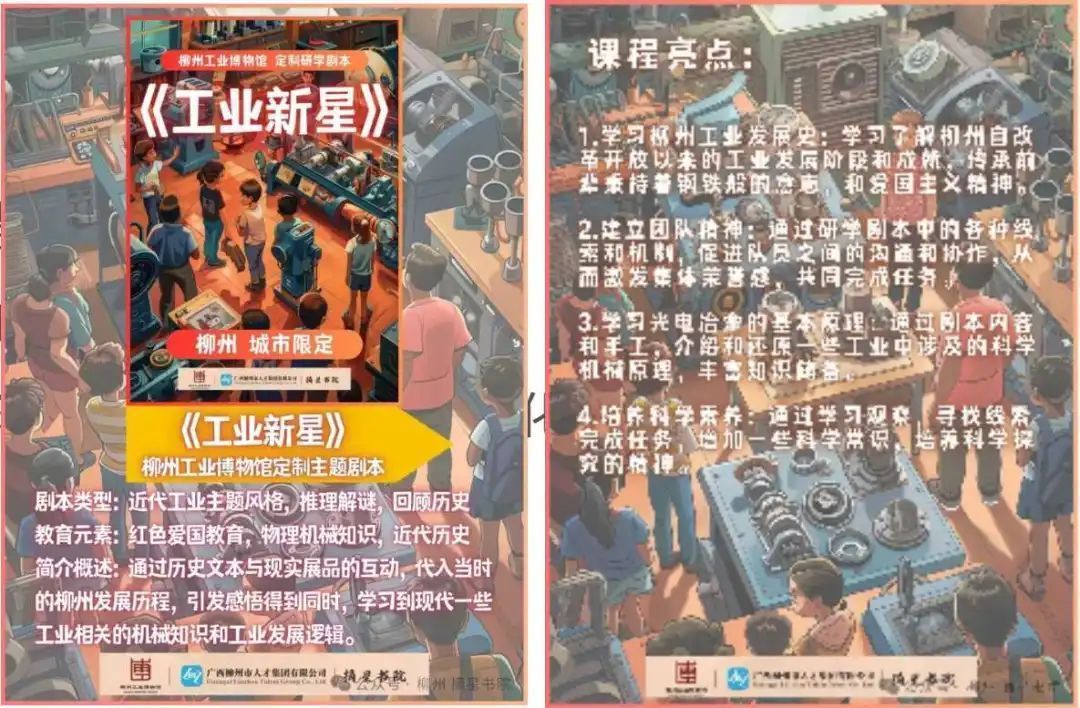 活动通过剧本杀的形式讲述柳州工业发展历史,并通过模拟真实的工业场景,让儿童直观地了解工业生产的各个环节。例如,展示原料的提取、加工、生产到成品的整个过程,帮助儿童理解工业生产的复杂性和多样性。